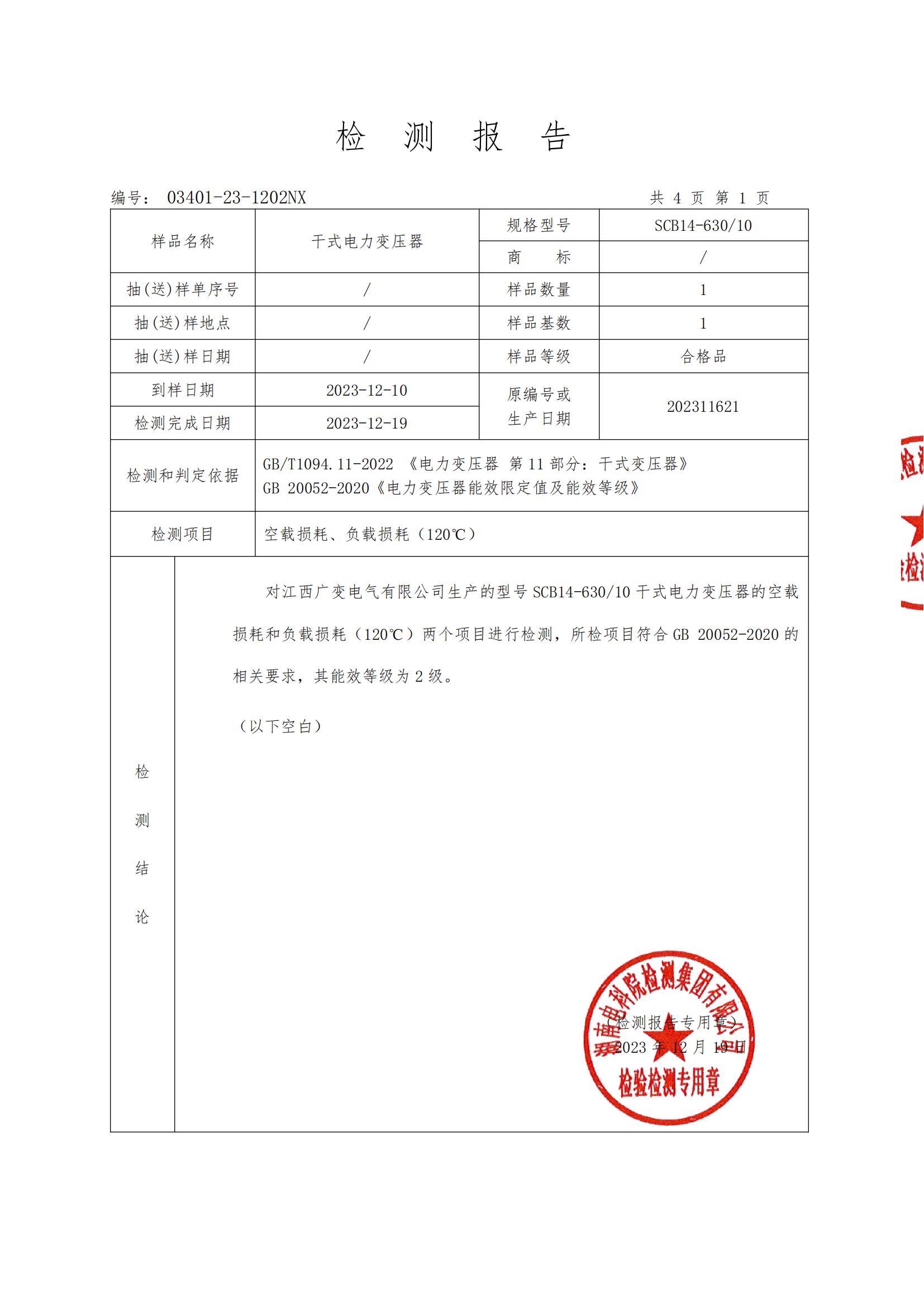 SCB14-630电力变压器能源效率检测